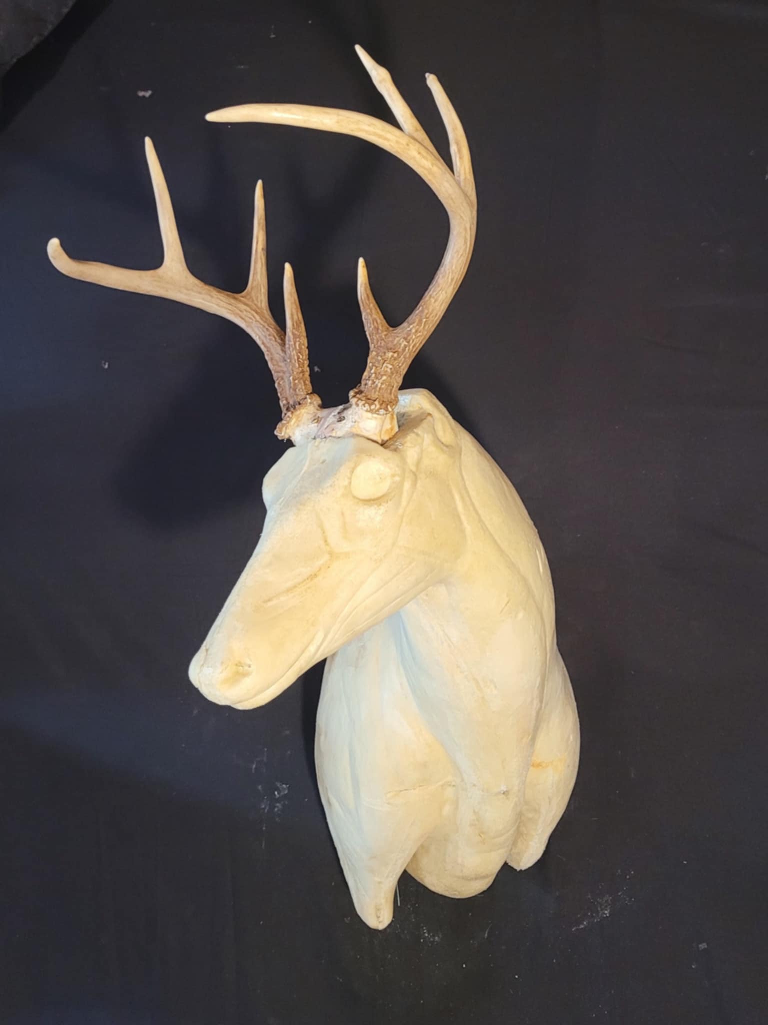This was a deer form I hand sculpted for my son, Rocco's first big buck. This is a pedestal RIGHT turn head down form. This won a Masters First Place ribbon at the Ohio Taxidermy Association Show.